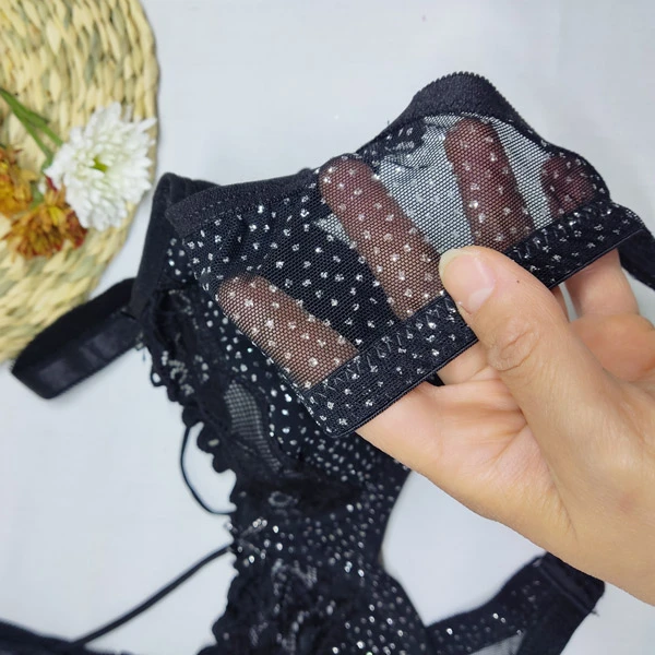 سوتین مشکی طرح دار توری است بسیار زیبا است. فنر دارد و دارای هارنس می باشد که زیبایی آن را بیشتر می کند. جنس آن بسیار نرم و لطیف است و بسیار محکم و خوش فرم می باشد.